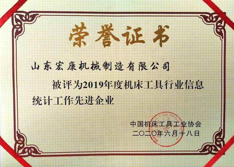公司榮獲機床工具行業信息統計工作先進企業稱號