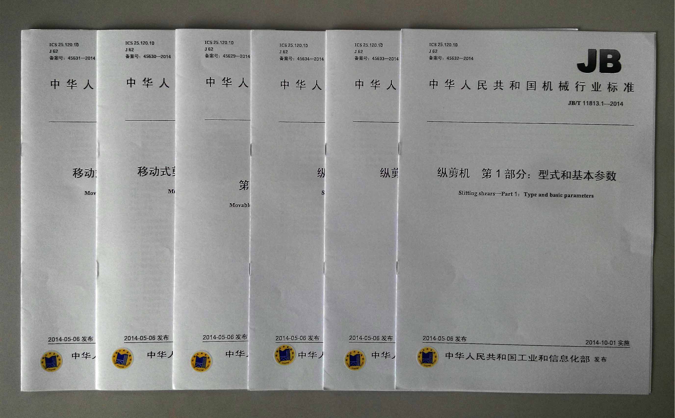 近期,集團公司負責制訂的有關縱剪機、移動剪板機的6項國家行業標準由工信部頒布,2014年10月1日正式實施。